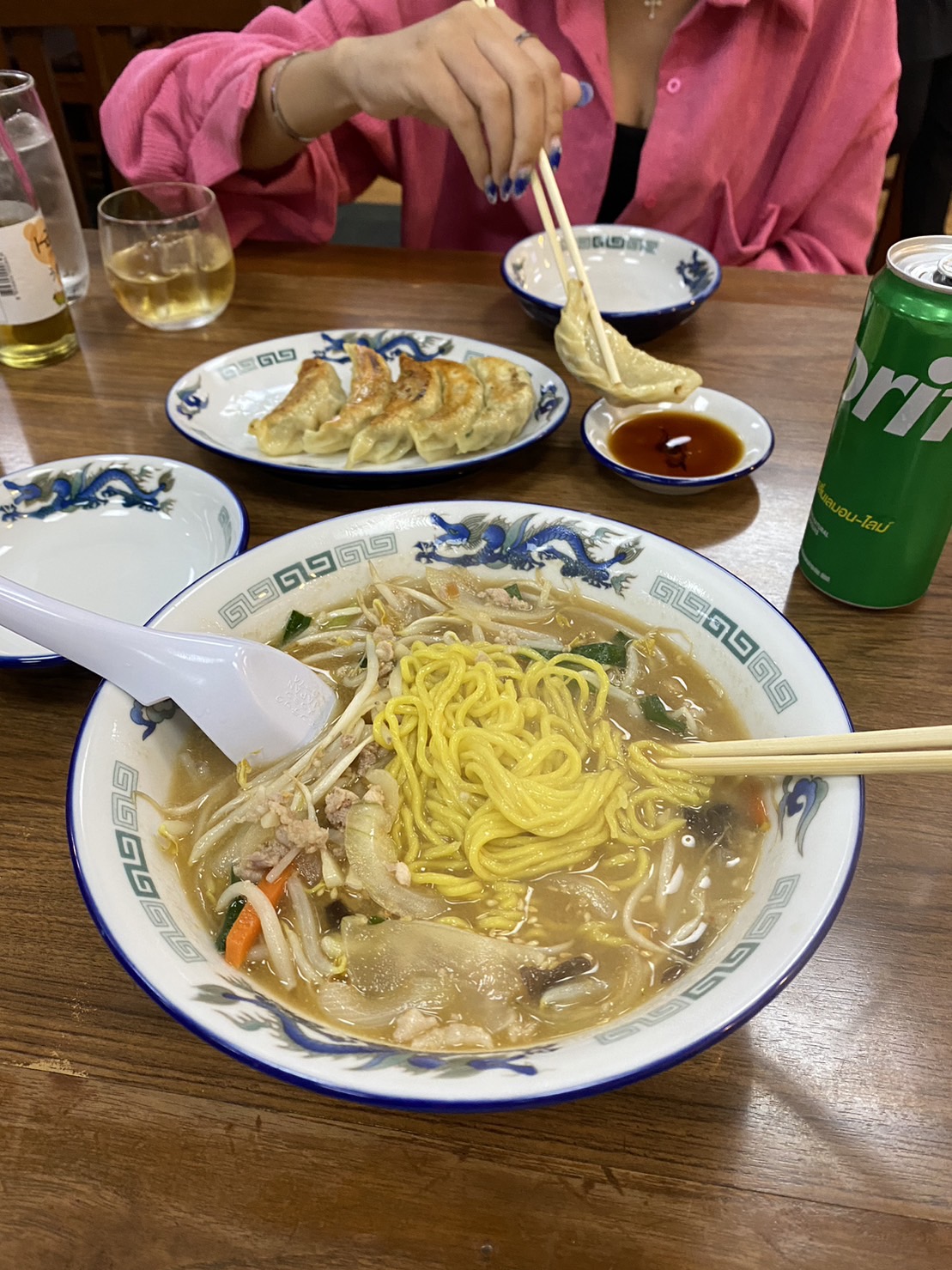 嬢おすすめのラーメン屋さんに行き、味噌ラーメンと餃子を食べて、世間話をしました。